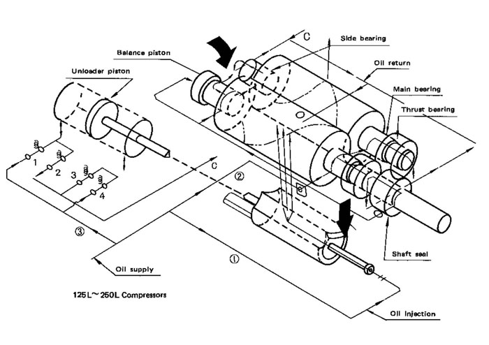 經(jīng)油泵提壓,為壓縮機(jī)供油,主要潤滑部位為壓縮機(jī)軸承。